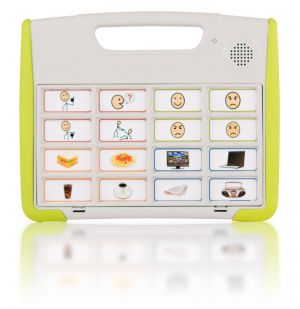 Comunicador S32: é um dispositivo para a comunicação alternativa que reproduz mensagens pré-gravadas, activadas por toque ou por manípulo.