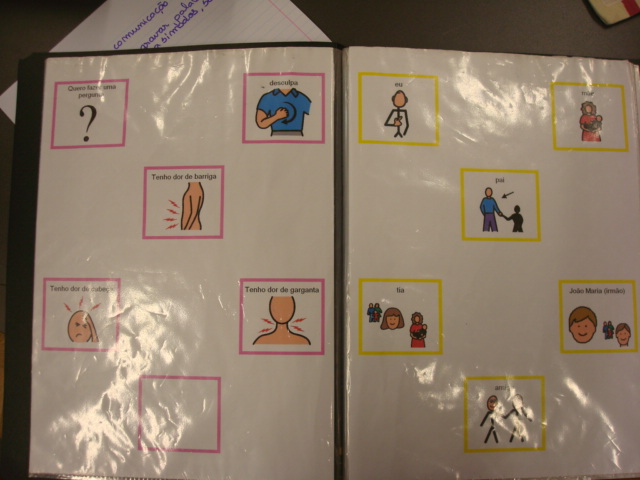 Caderno de comunicação com símbolos do SPC: serve para que alunos que não falam tenham um meio alternativo e aumentativo de comunicação de comunicação.
